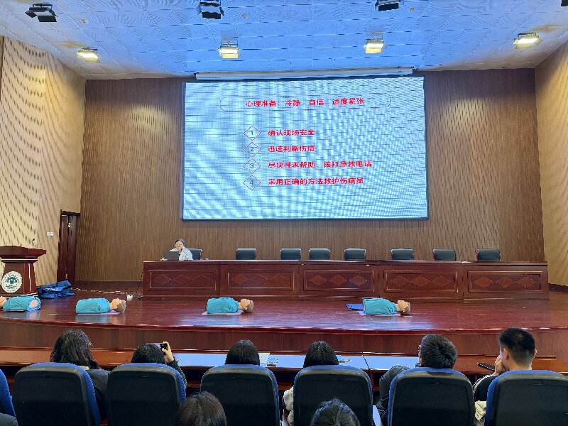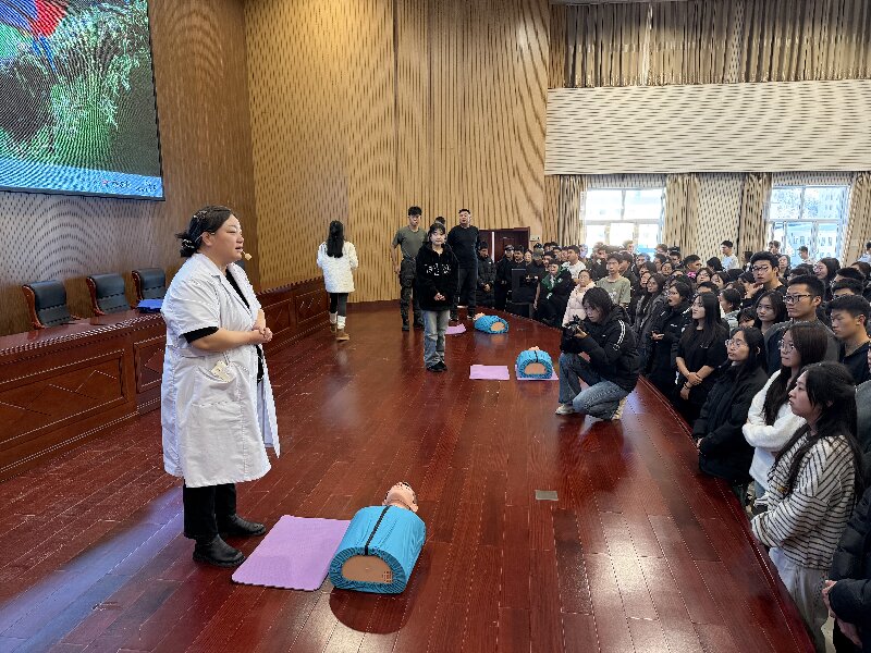 为深入落实自治区教育厅关于应急救护普及性培训的工作部署,切实提升在校学生自救互救能力与突发状况处置水平,11 月 12 日下午,我校后勤管理处校医院联合学生工作处(党委学生工作部、武装部)在图书馆四楼报告厅,组织开展急救技能专项实操培训,170 余名在校学生参加此次培训。