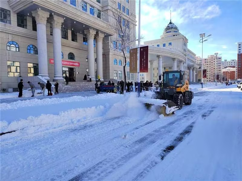 3月28日至29日,学校同步开展全国计算机等级考试、硕士研究生复试,迎接自治区科协,多项重点工作叠加推进。3月29日清晨,海拉尔区突降大雪,校园积雪严重,影响考生、师生出行与校园运行安全。